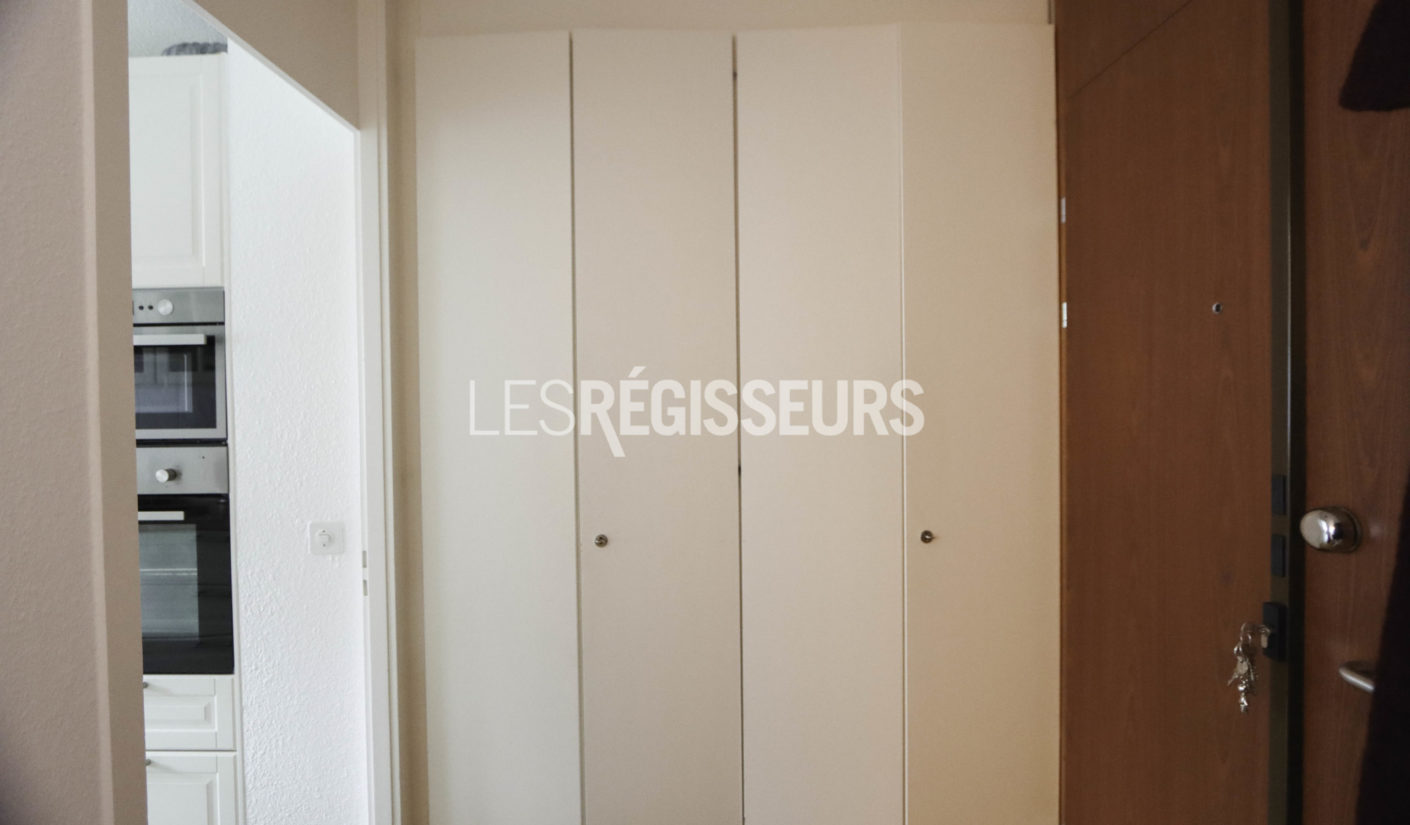 Ce bien rafraîchi en 2023 est composé d’un hall d’entrée avec armoires encastrées, d’une cuisine entièrement agencée et équipée, d’une grande pièce à vivre et d’une chambre. Une salle de bains avec baignoire et WC complète ce bien.