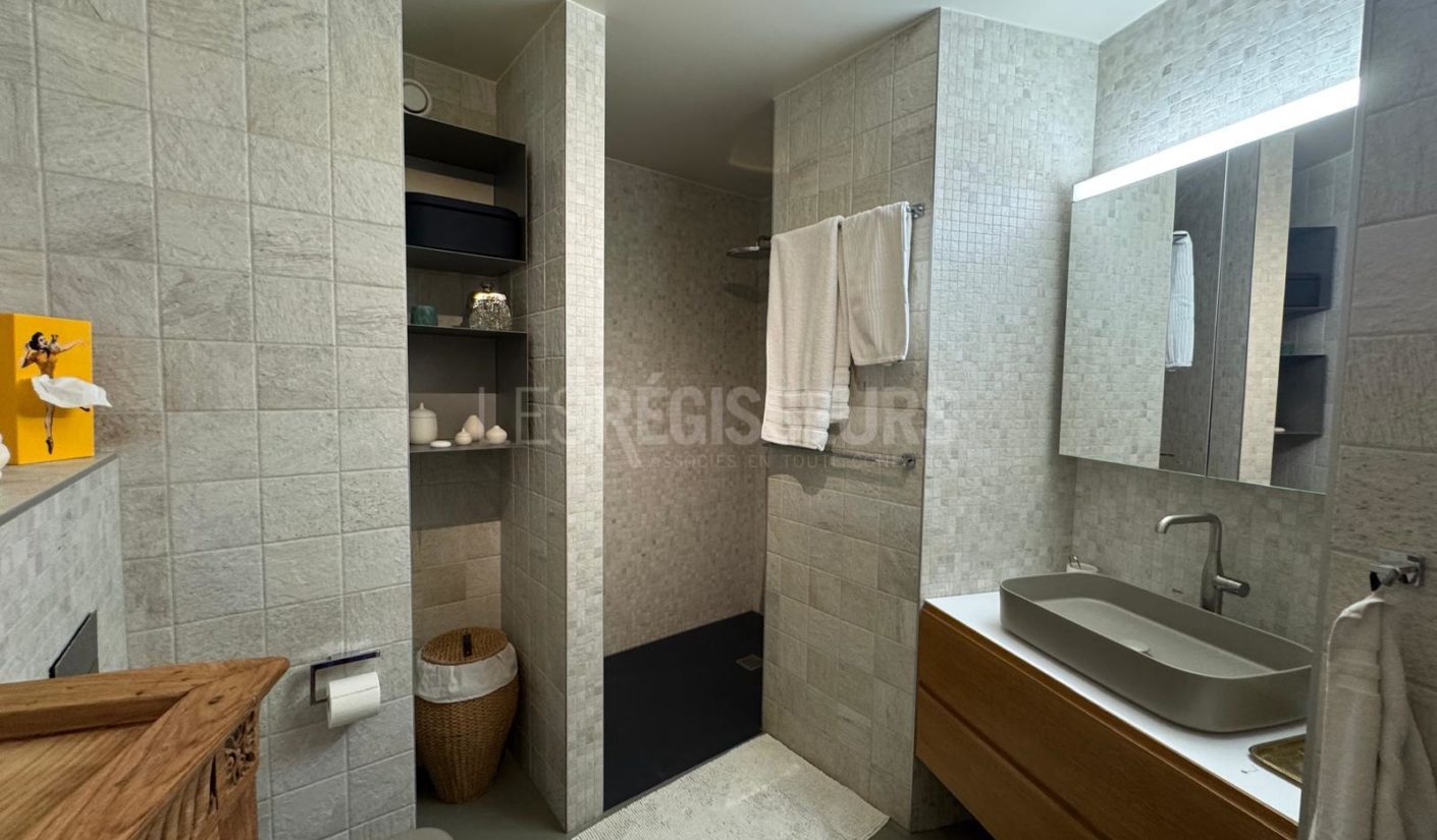 La partie nuit offre trois chambres lumineuses dont une suite parentale avec dressing, ainsi qu’une grande salle de bains avec douche à l’italienne et une buanderie (possibilité de créer une deuxième salle d’eau).