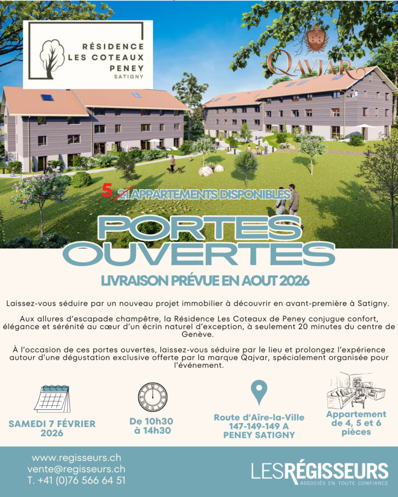 Le quartier offre également l’ensemble des commodités urbaines essentielles : crèche Omnibulle, école de Satigny-Village, pharmacies, poste et services de proximité, faisant de Peney un lieu de vie particulièrement agréable au quotidien.