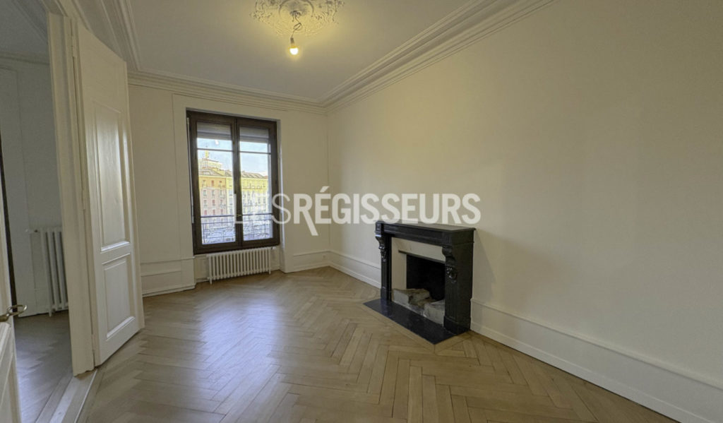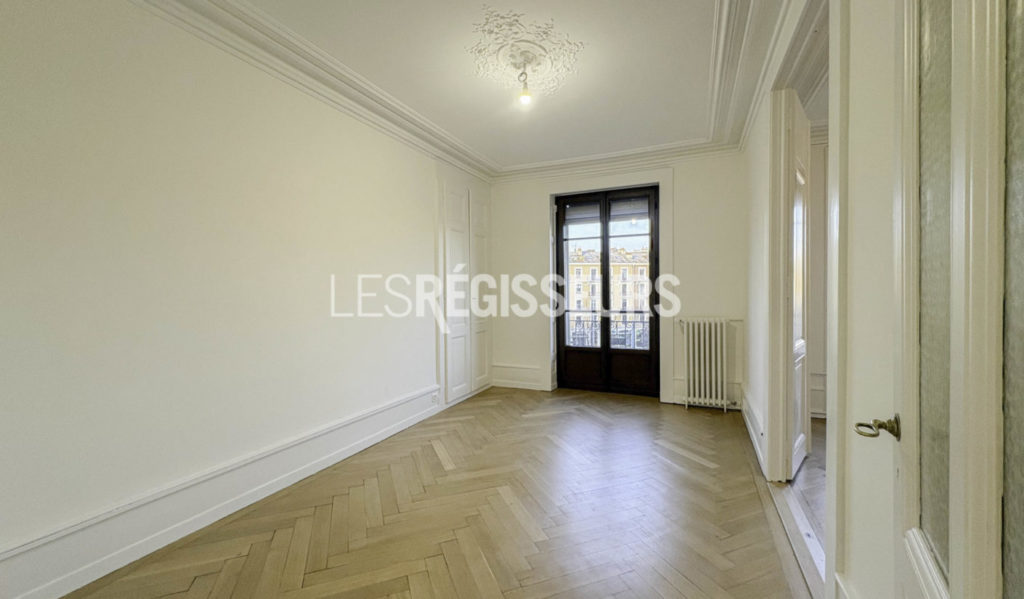 Charme haussmannien rare à Genève : moulures élégantes, belles hauteurs sous plafond, volumes généreux