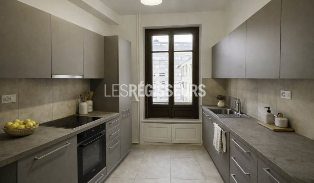 Rénovation soignée et matériaux de qualité : l’appartement a été entièrement repensé pour offrir un confort moderne tout en respectant l’âme du lieu.